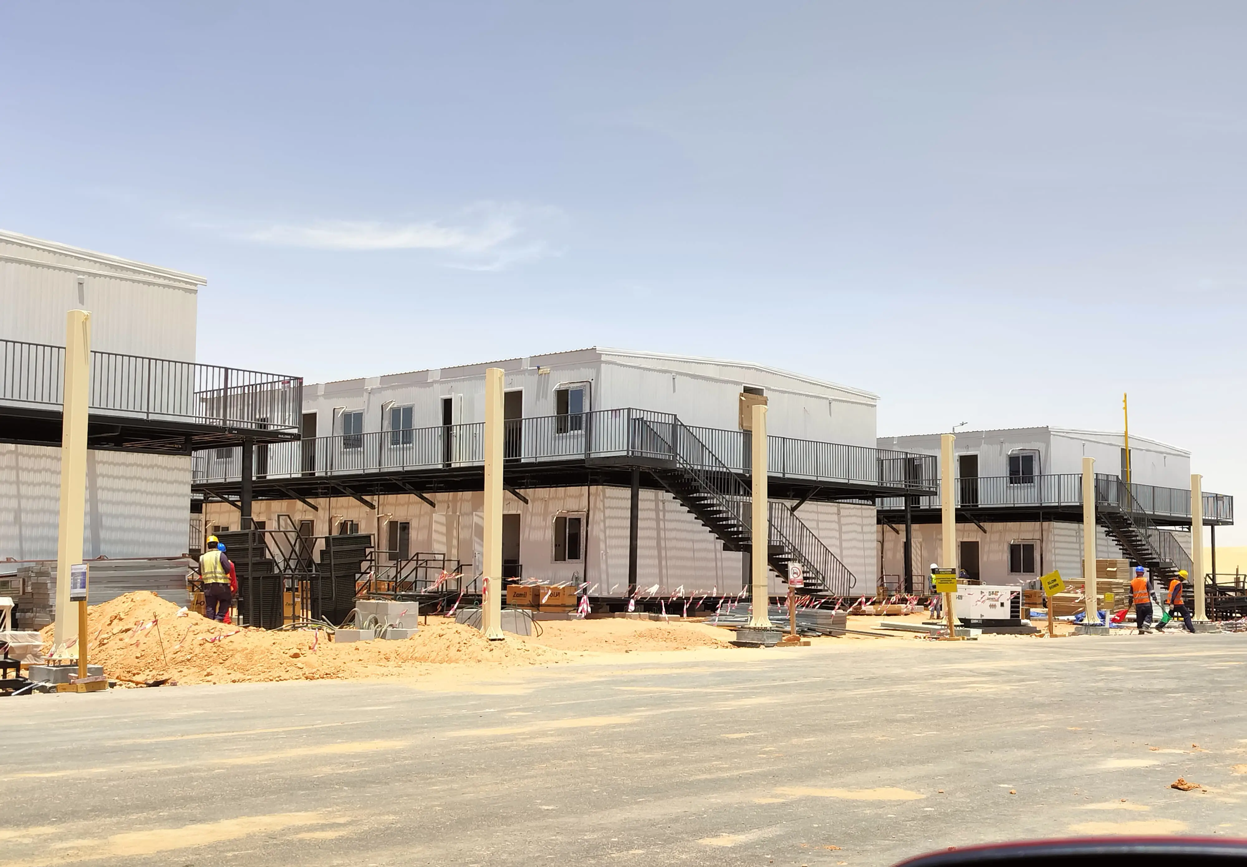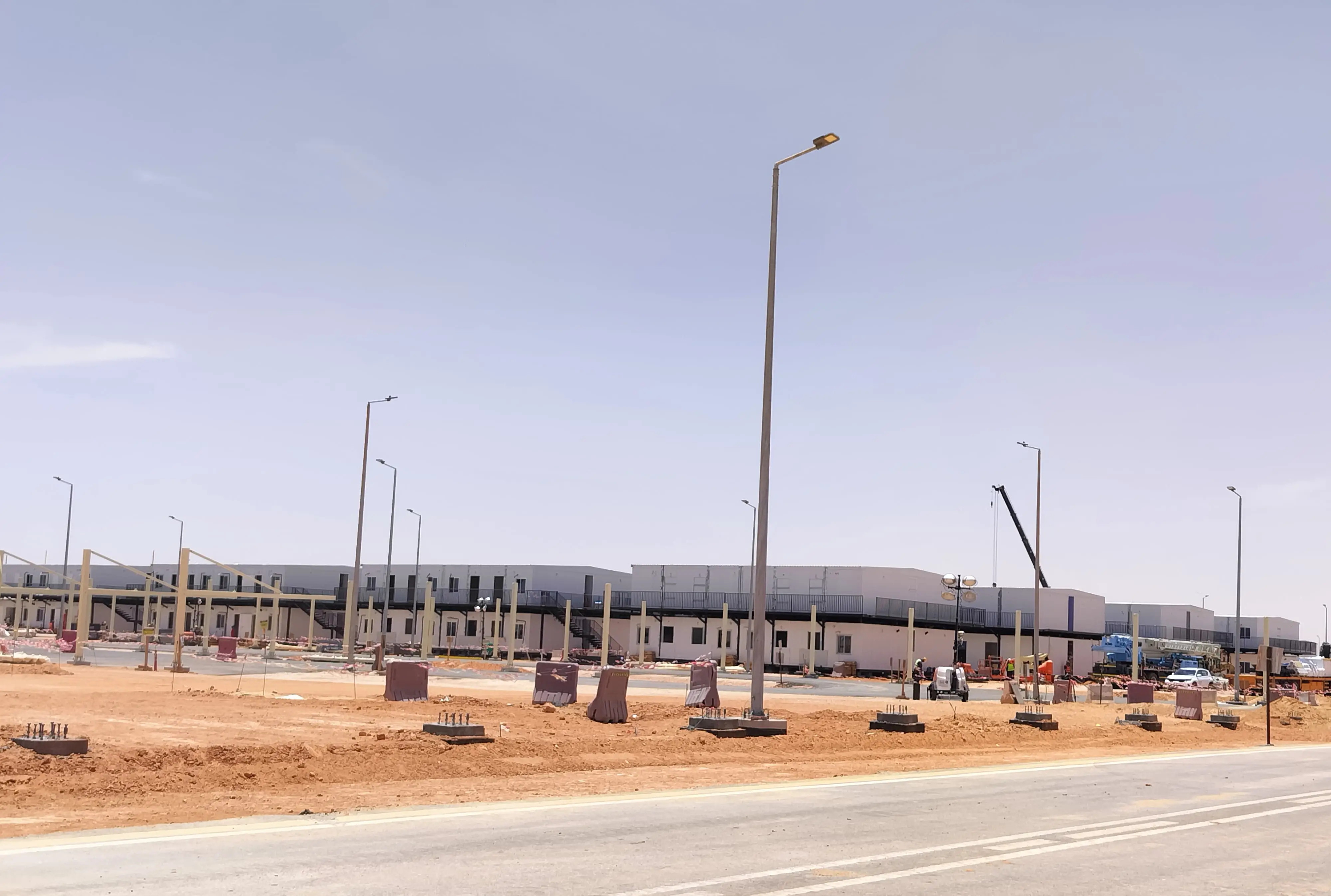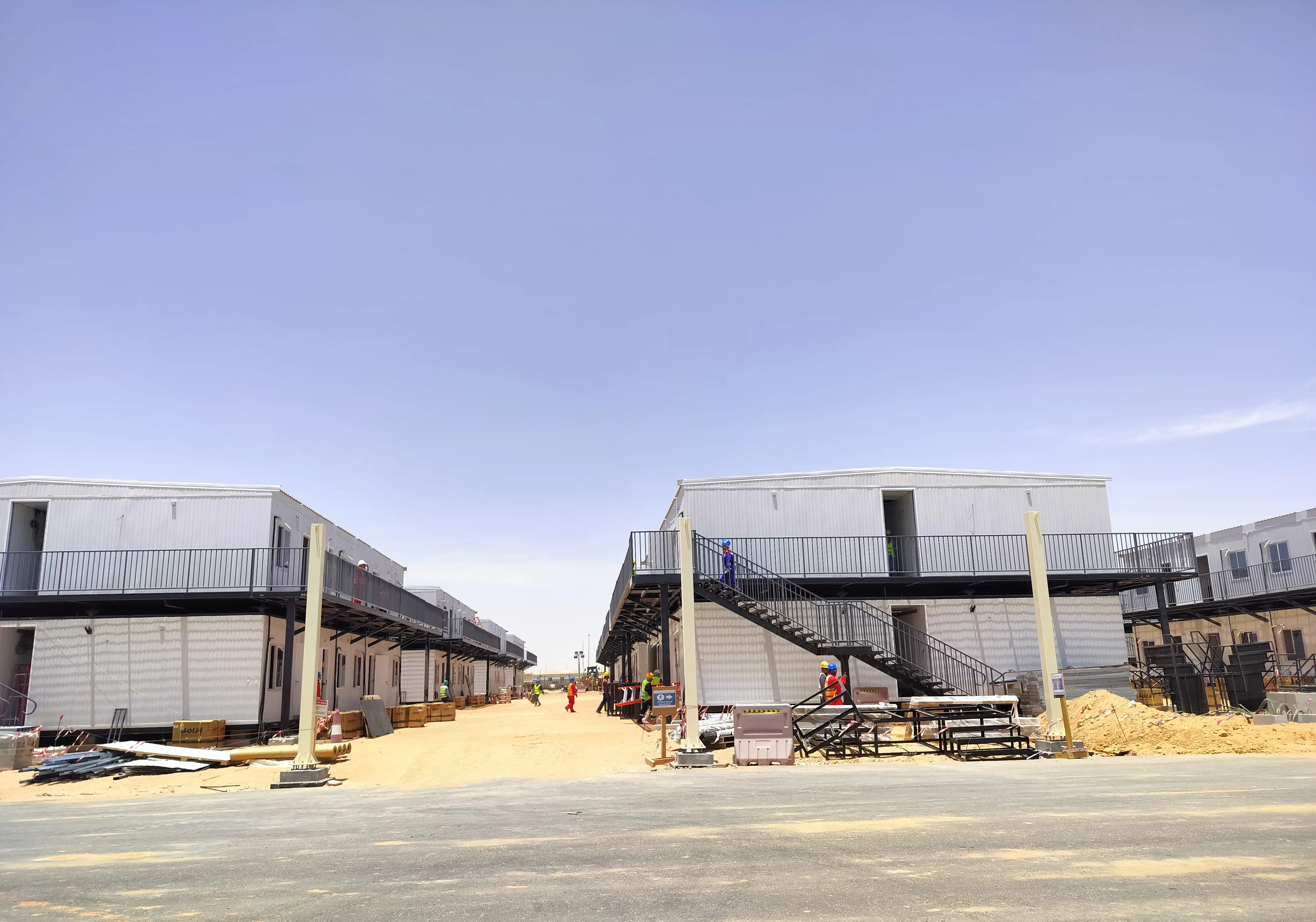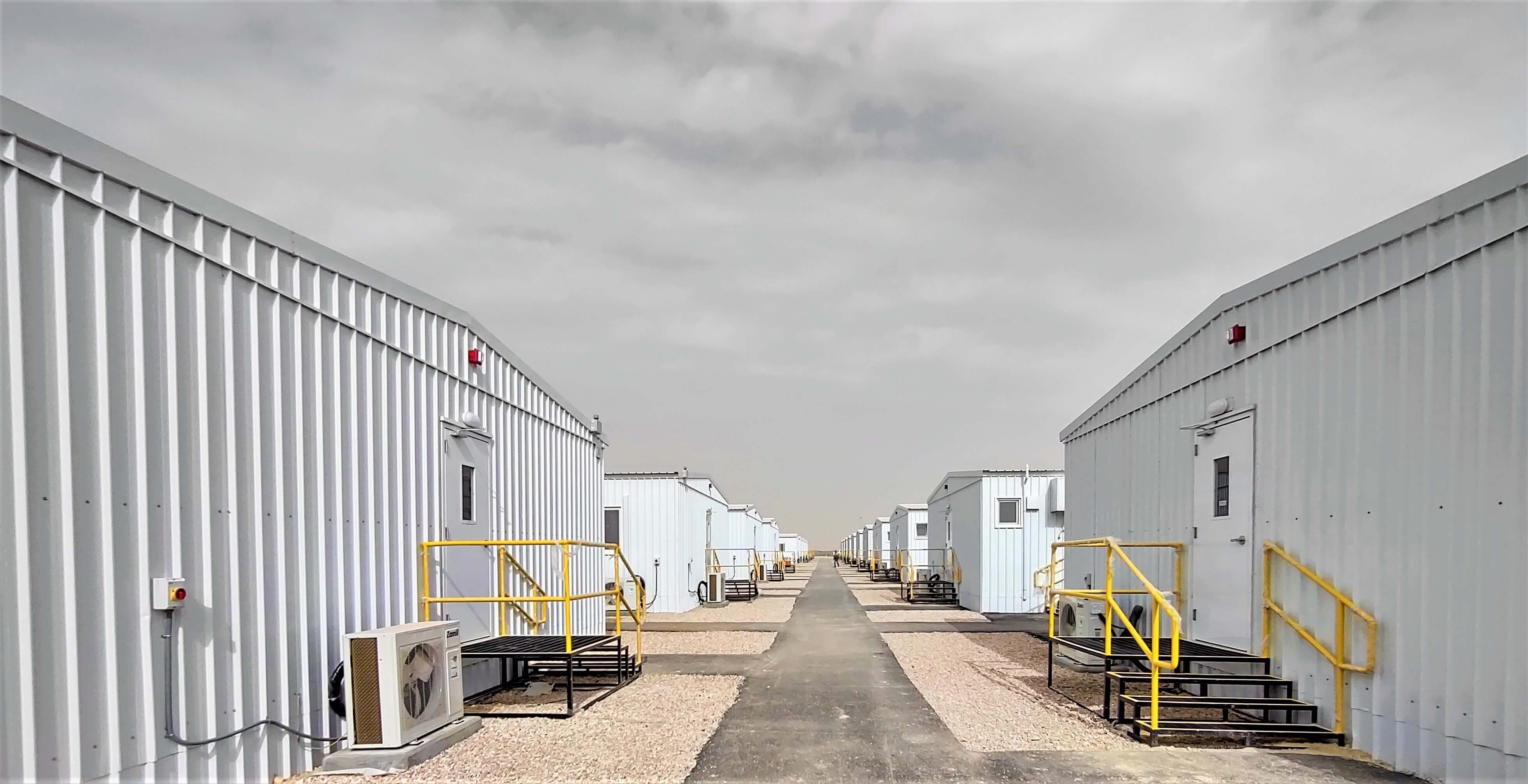 توريد وتركيب المباني المحمولة ، وتجهيز الموقع ، وأنظمة المياه والصرف الصحي ، وأنظمة مكافحة الحرائق ، والأنظمة الكهربائية ، والاتصالات ، ومواقف السيارات ، والطرق ، والأسوار.