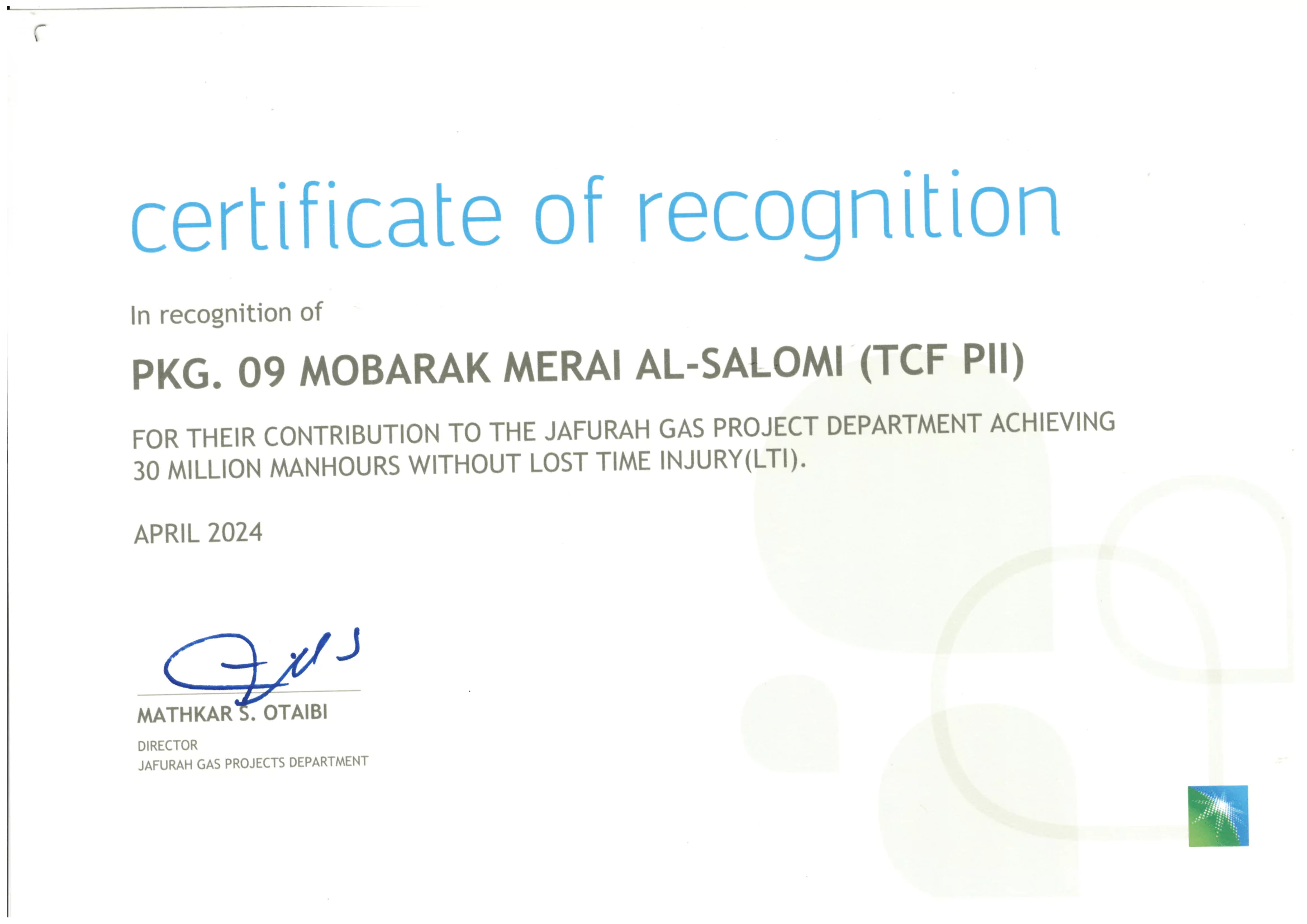 The company is proud to be making significant contributions to the economic and infrastructure development in the Kingdom of Saudi Arabia.